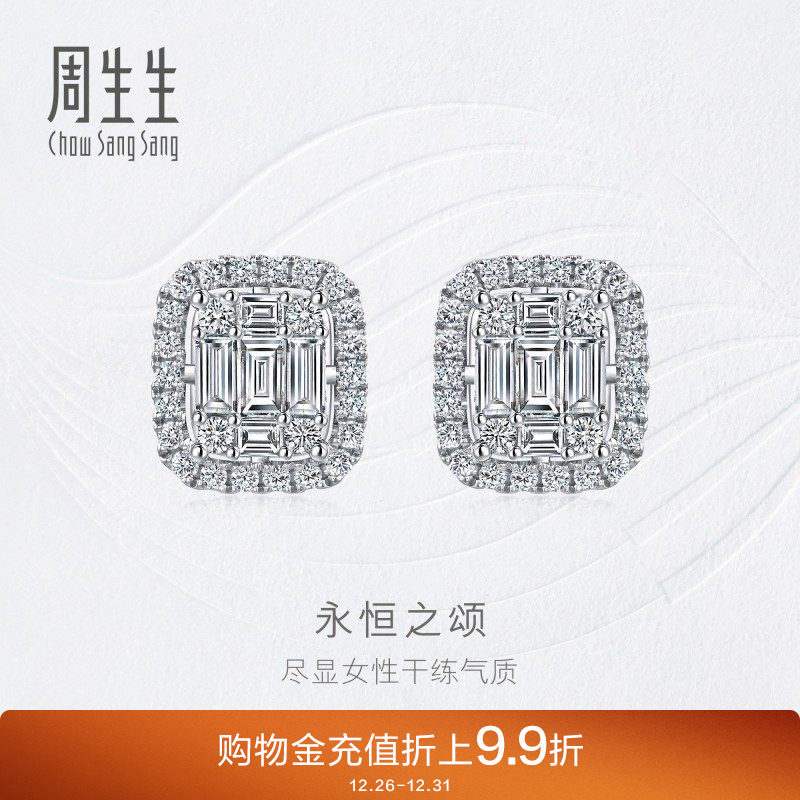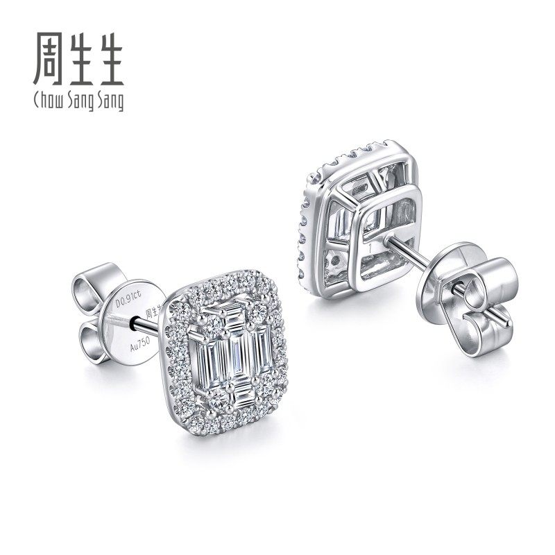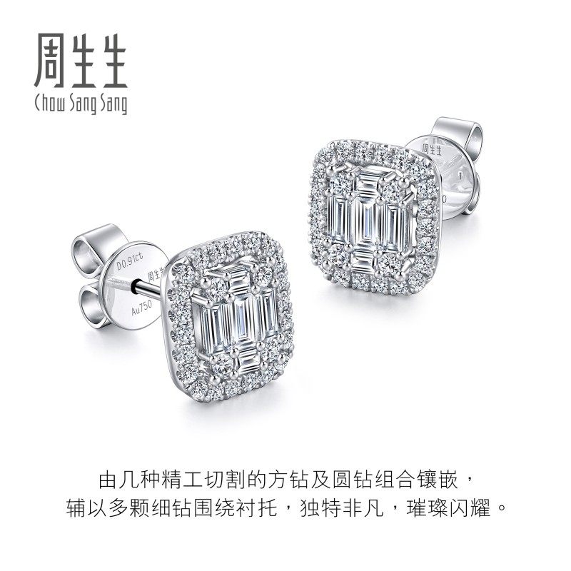 周生生珠宝钻之颂永恒之颂钻石耳钉18K白色黄金耳饰93505E