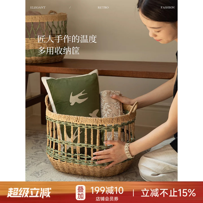 藤编草编竹编收纳编织篮子日式桌面浴室整理零食框收纳筐脏衣篮