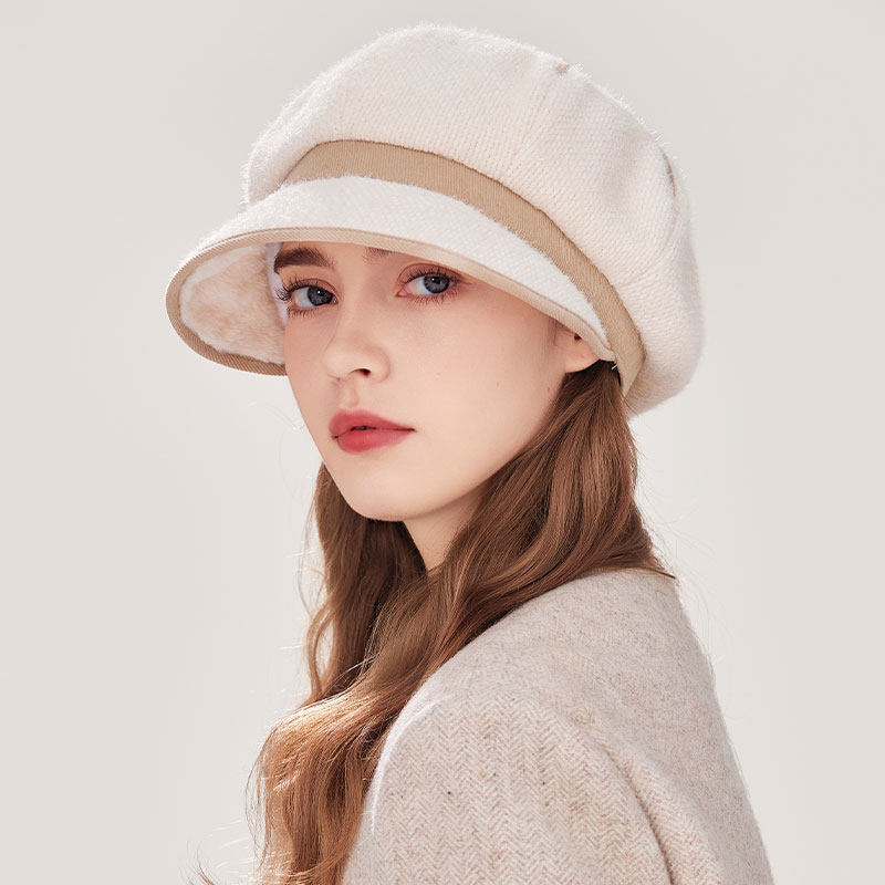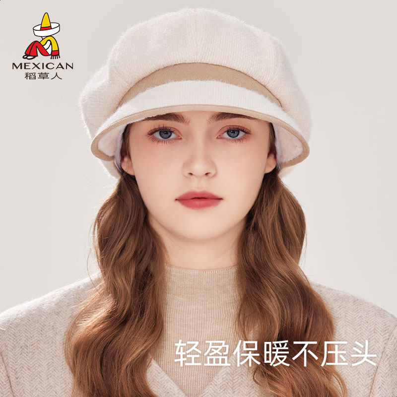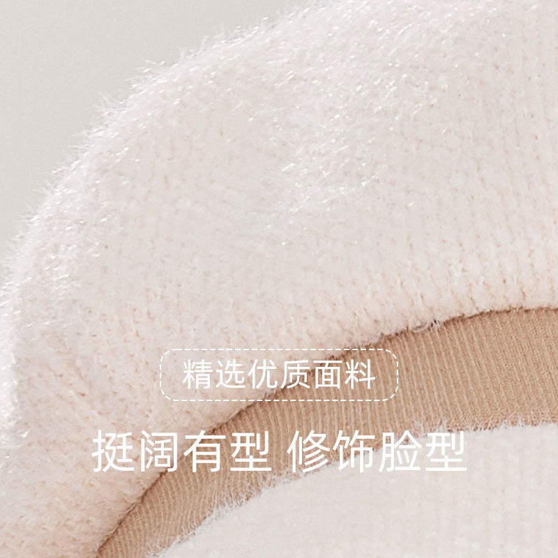 稻草人超火的帽子女2025秋冬白色气质大头围宽帽檐显脸小贝雷帽潮