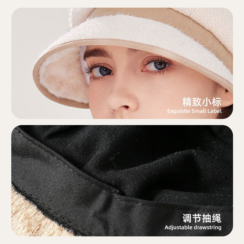 围巾帽子手套一体女连帽冬季帽可爱保暖围脖毛绒冬天三件套厚防寒