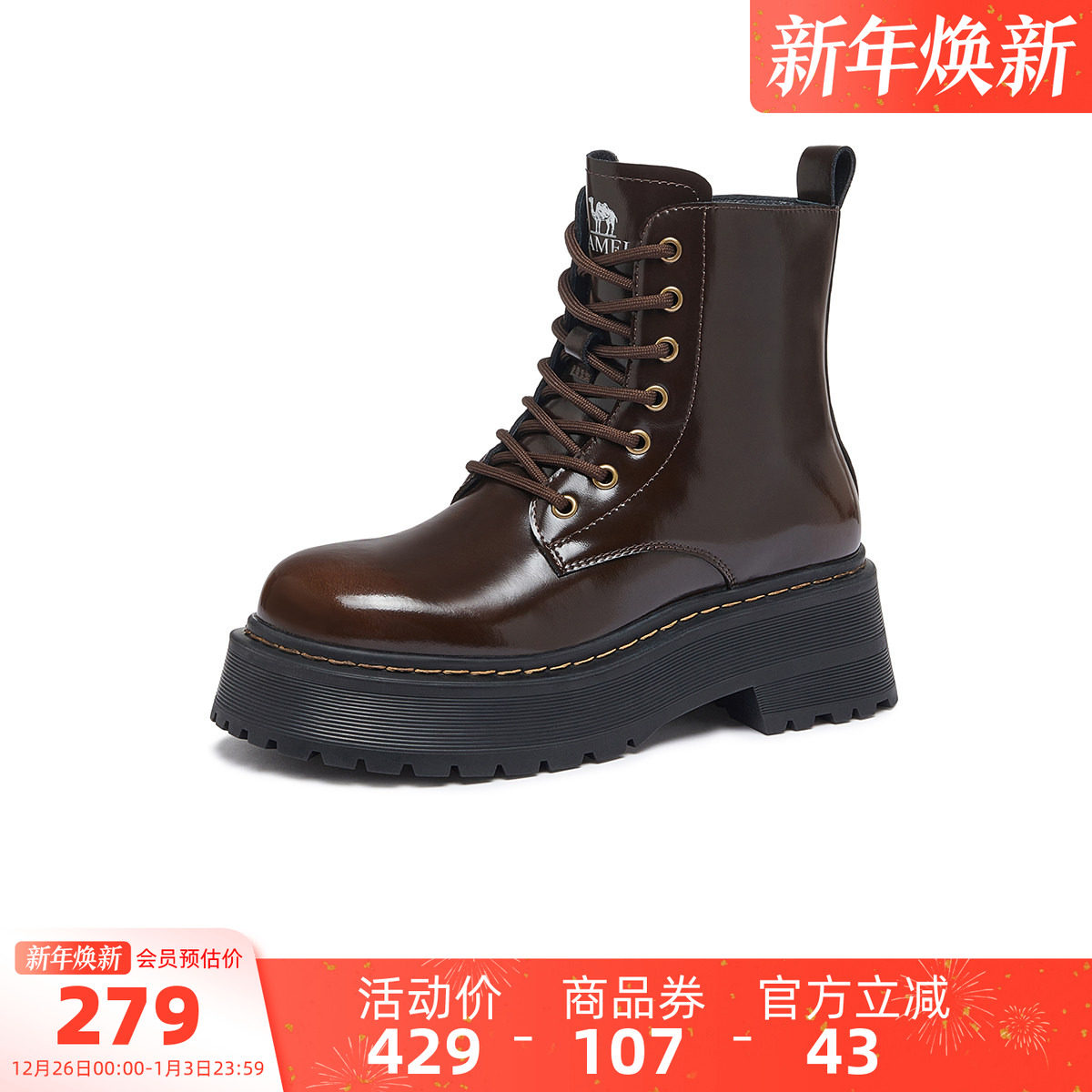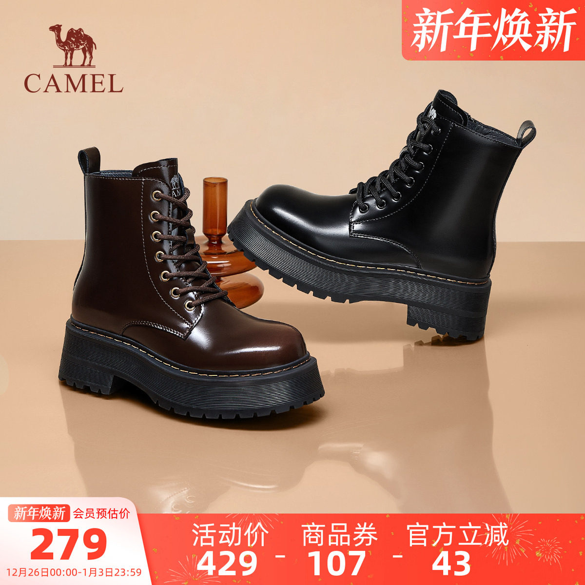 骆驼女鞋2025夏季新款真皮休闲拉链短靴粗跟厚底百搭机车马丁靴女