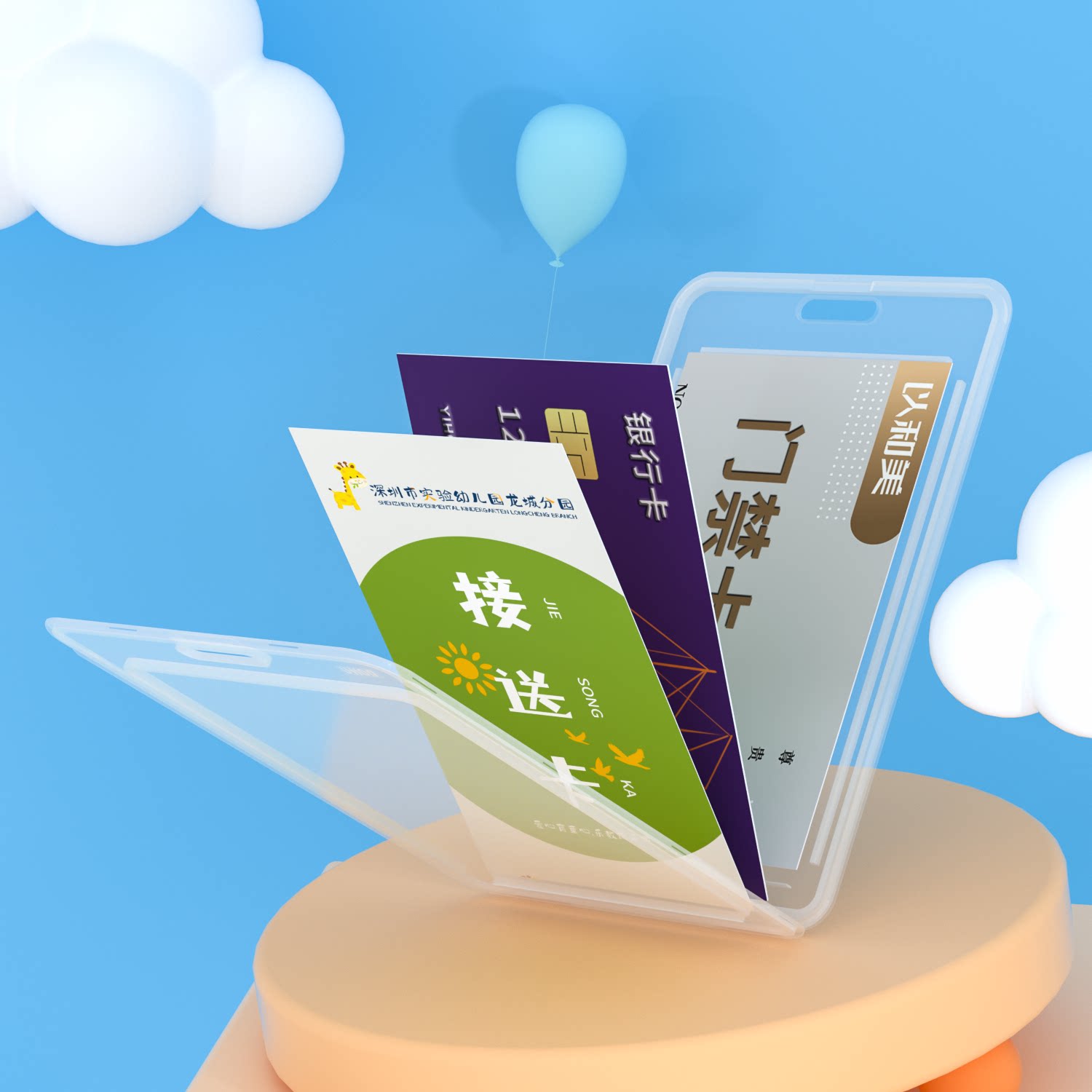 双面透明耐用学生校牌卡套 可放2张卡