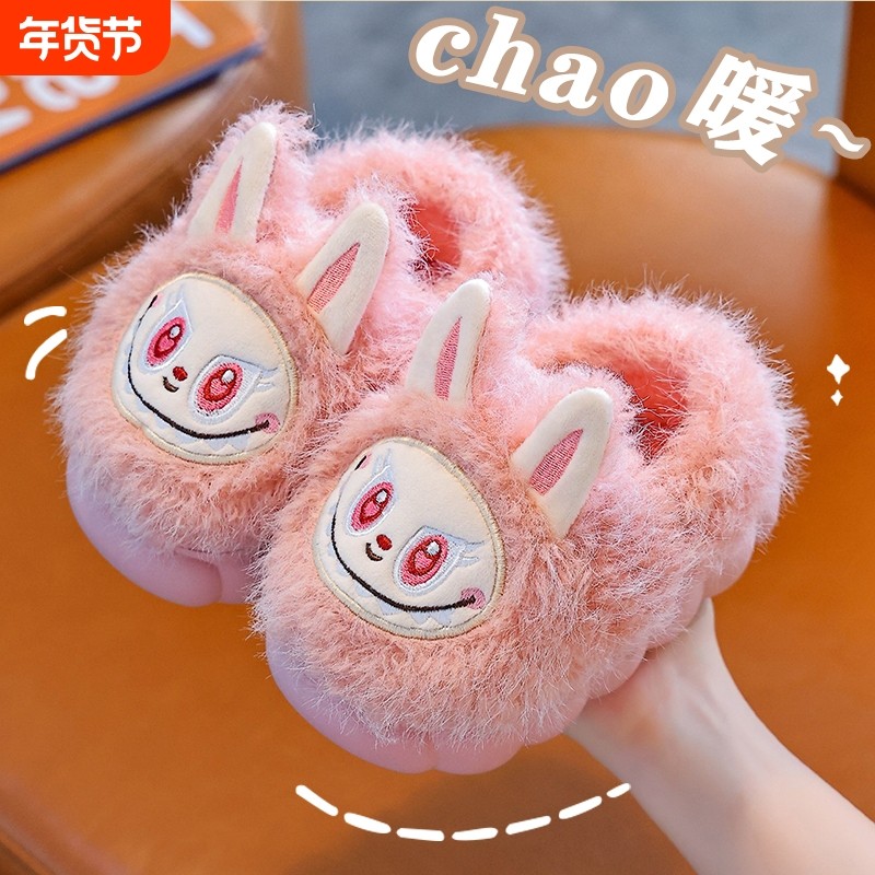 儿童棉鞋男童冬季包跟防滑室内2025新款可爱拉不不女孩毛拖鞋外穿