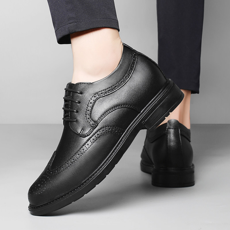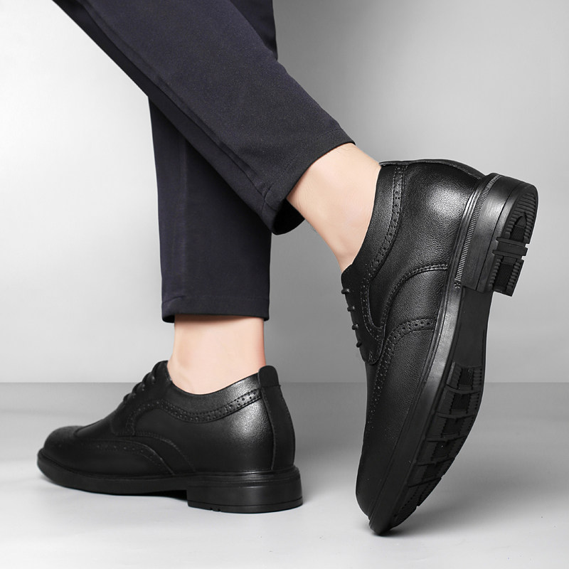 海澜之家男鞋秋冬季正装商务真皮布洛克内增高皮鞋男款加绒德比鞋