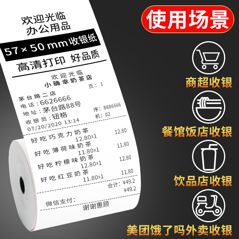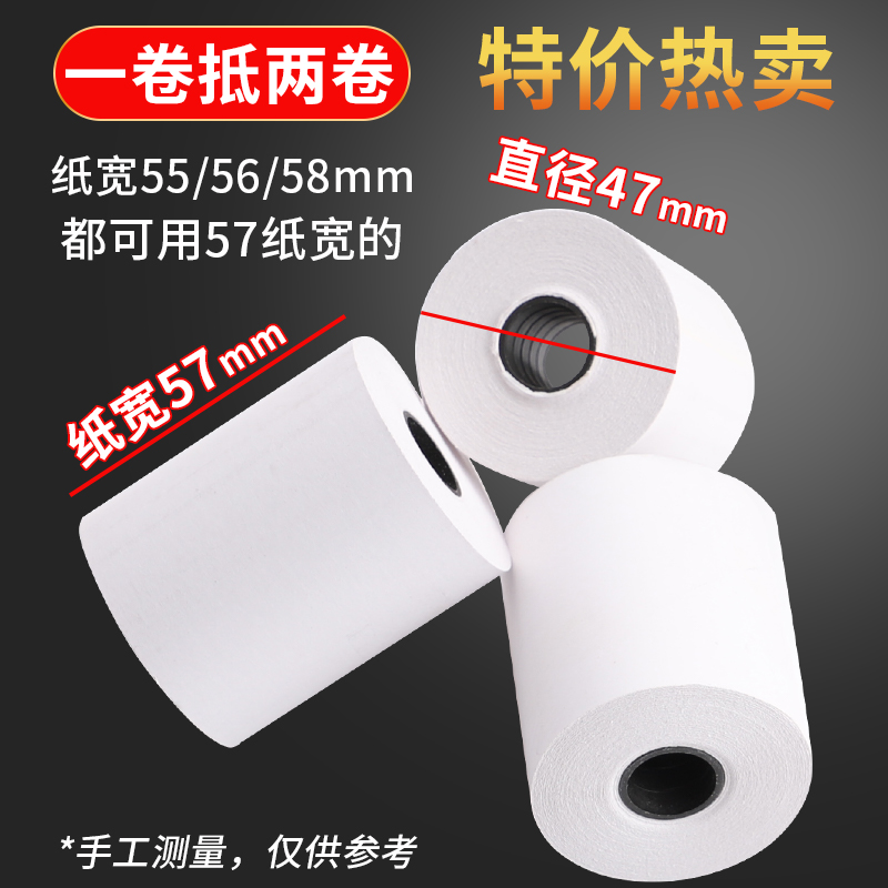 玛丽100卷热敏纸收银纸打印机57x50超市小票纸58mm超市纸餐厅票据电脑美团外卖纸5750卷纸出票打票小号收款