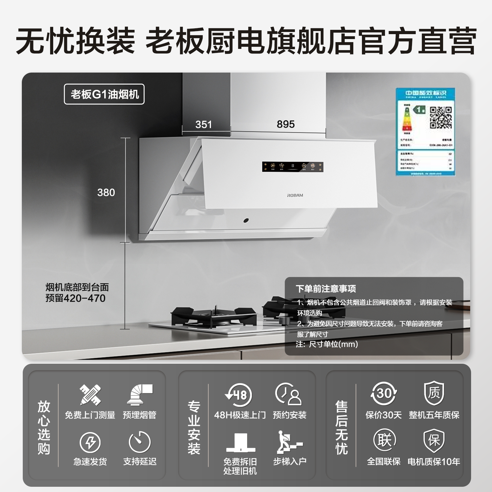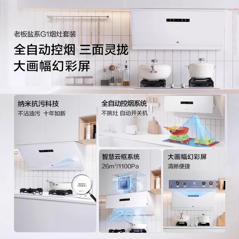 【纳米抗污】老板盐系G1抽吸油烟机家用厨房大吸力官方旗舰店正品