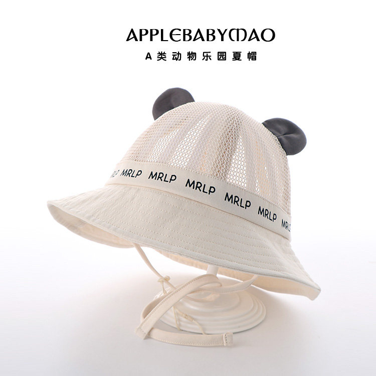 木然良品夏季男女宝宝渔夫帽儿童透气网眼遮阳帽动物乐园外出凉帽