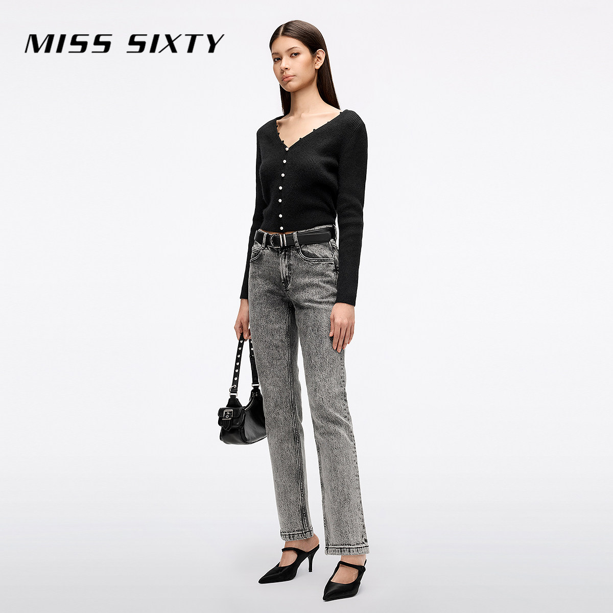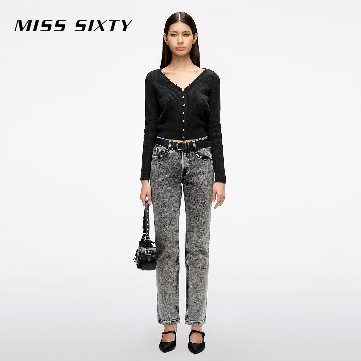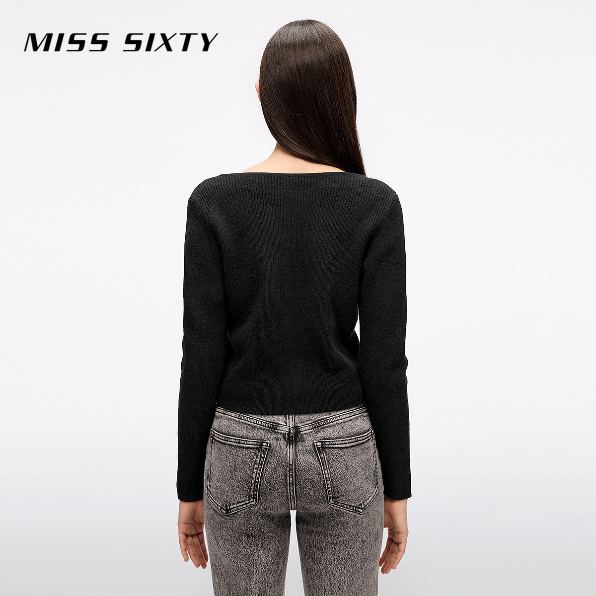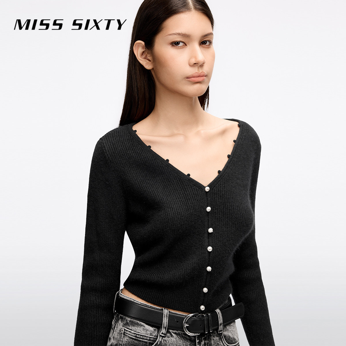 Miss Sixty2025春秋款针织衫V领重工钉珠优雅通勤气质毛衣