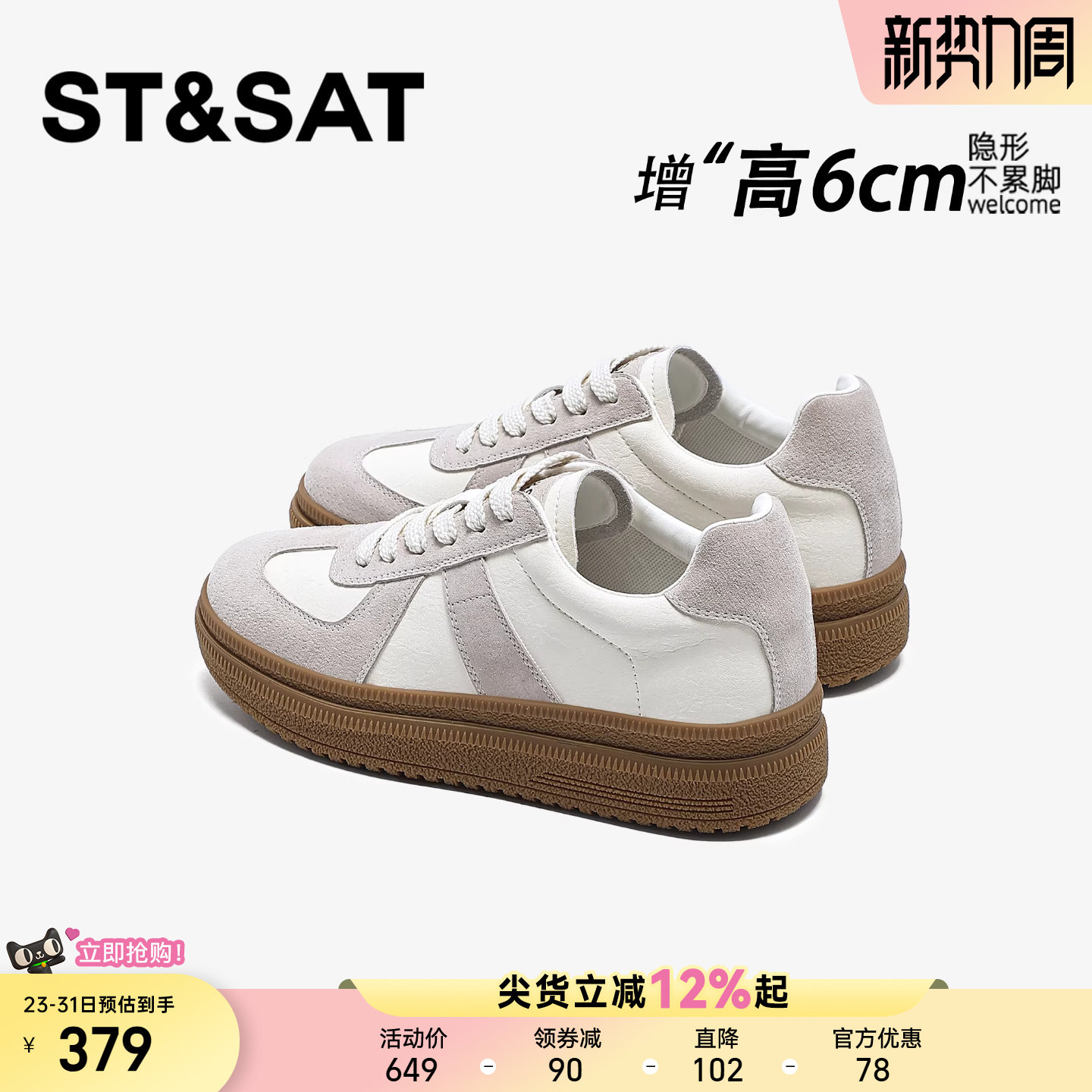 星期六隐形内增高女鞋6CM厚底德训鞋女百搭轻便休闲松糕阿甘板鞋