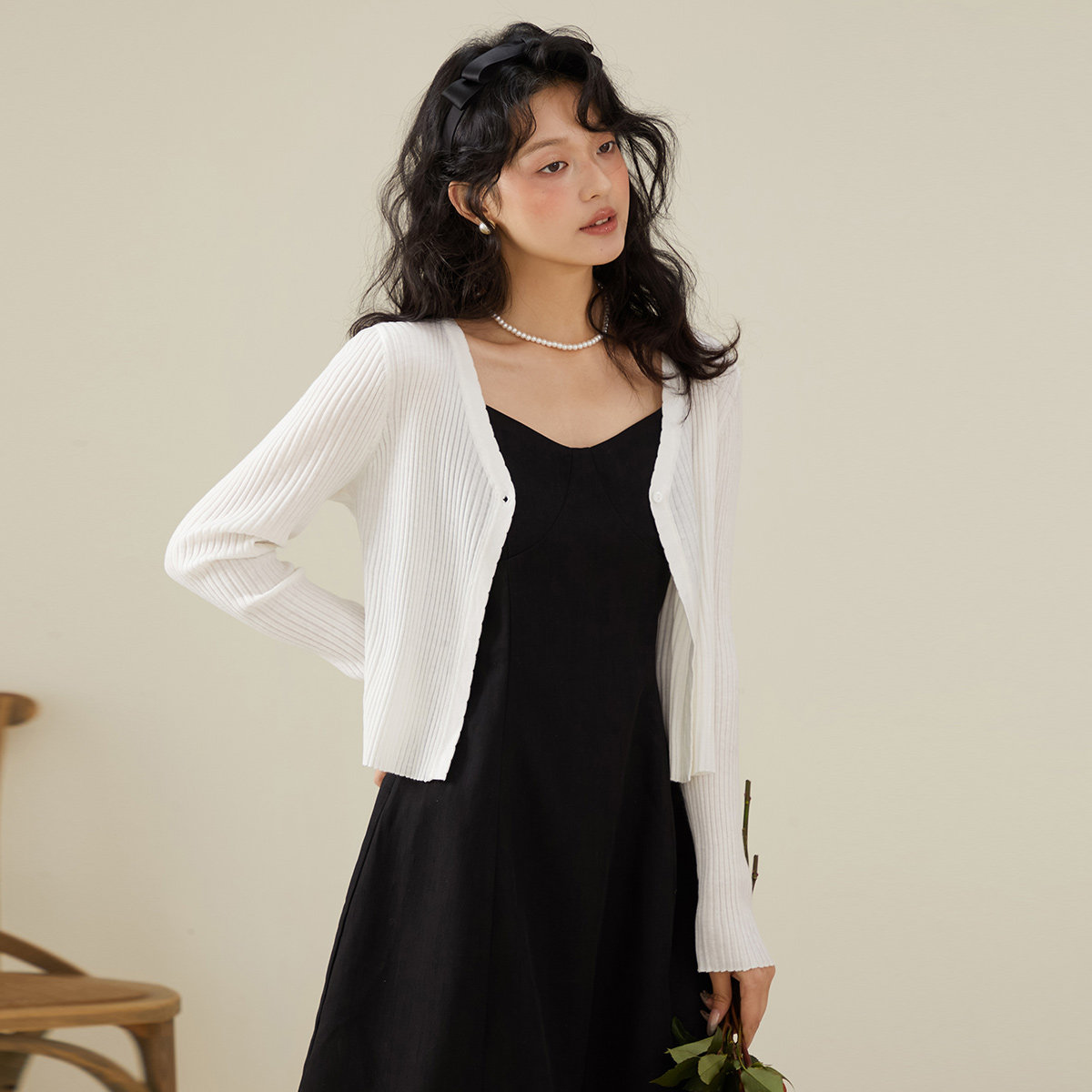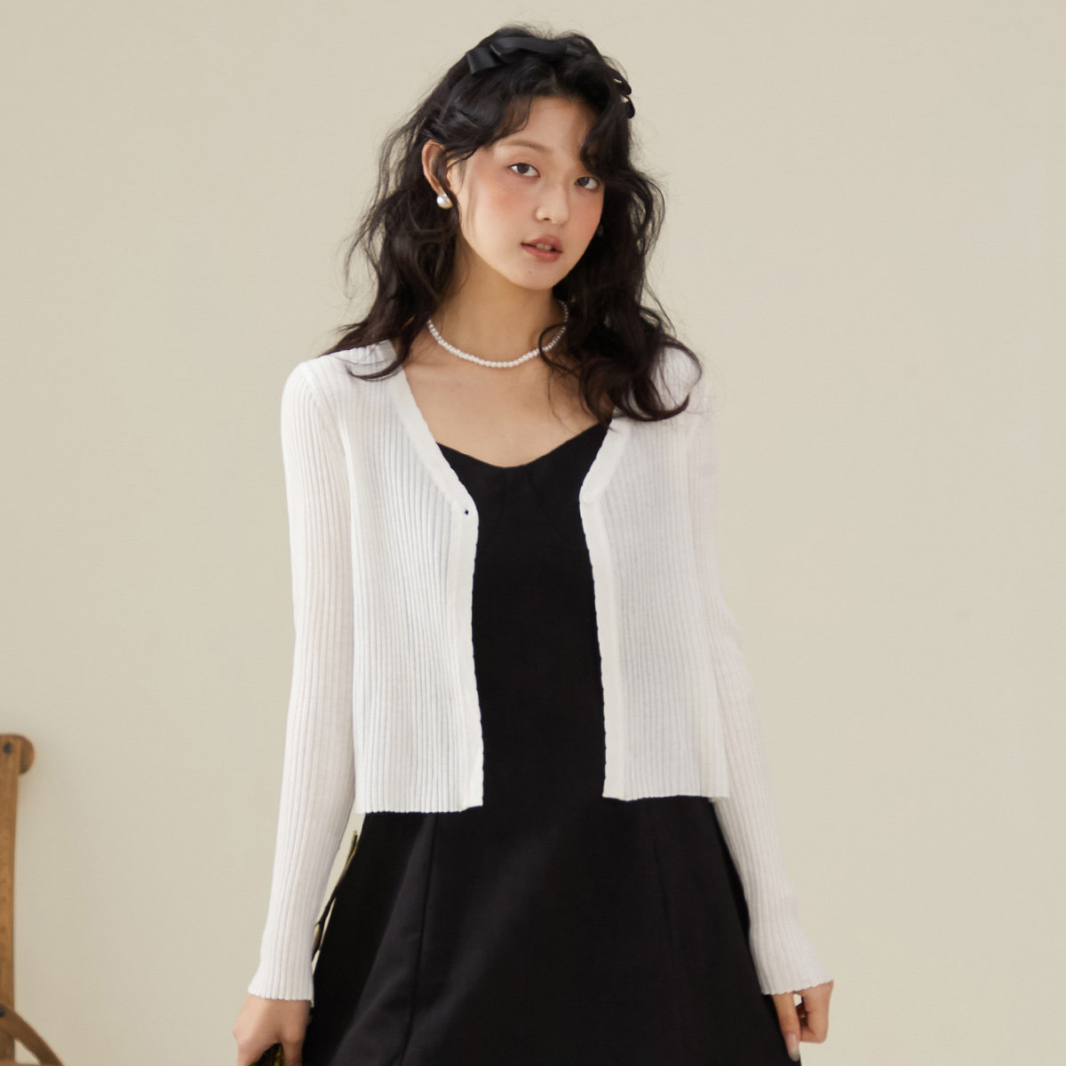 one more秋款薄款冰丝开衫外套v领针织衫女长袖披肩外搭气质上衣