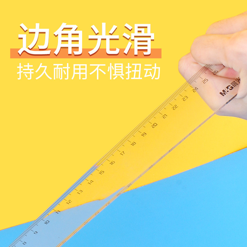 晨光办公直尺塑料不带波浪线绘图测量透明划线尺格尺教师专用20cm直尺30cm一年级小学生文具加厚板尺