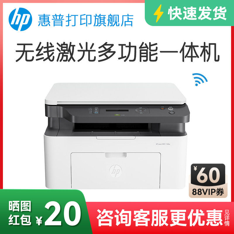 惠普Laser MFP 1188w黑白激光无线WiFi手机打印机一体机A4复印扫描可连接小型家用家庭学生m1136w办公专用nw