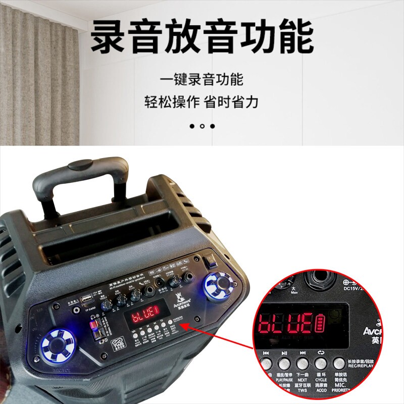 英国皇冠12寸木质广场舞蓝牙音响外拉杆便携式充电无线话筒音箱户