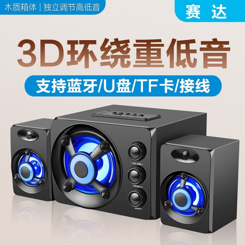 赛达 D-208低音炮电脑音响台式家用桌面小型多媒体蓝牙音箱有线木
