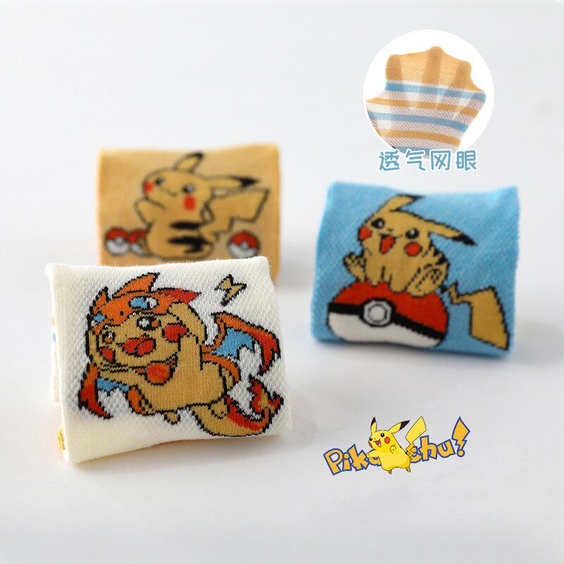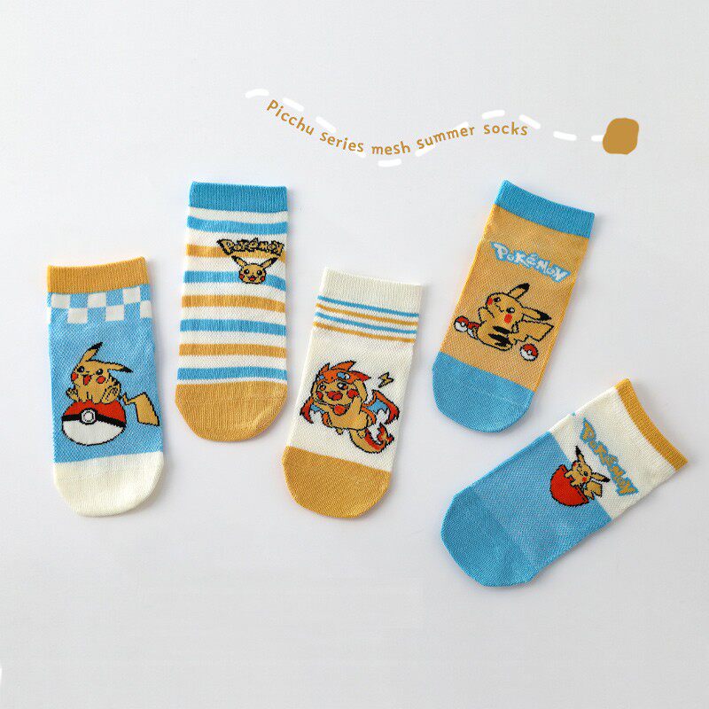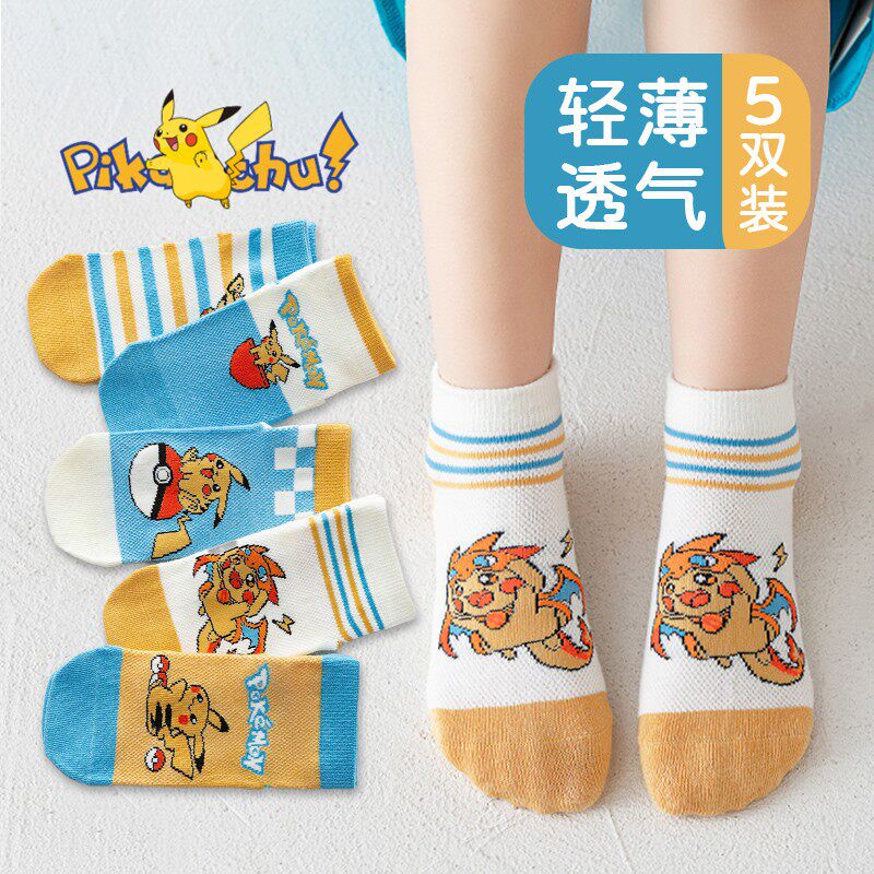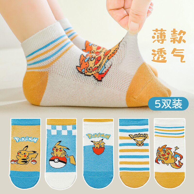 儿童皮卡丘袜子春夏薄款网眼男童夏天卡通短袜小学生男孩宝宝棉袜