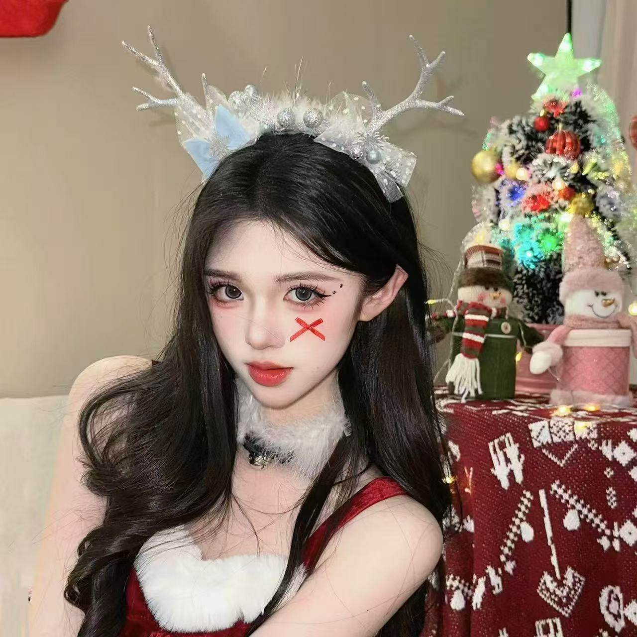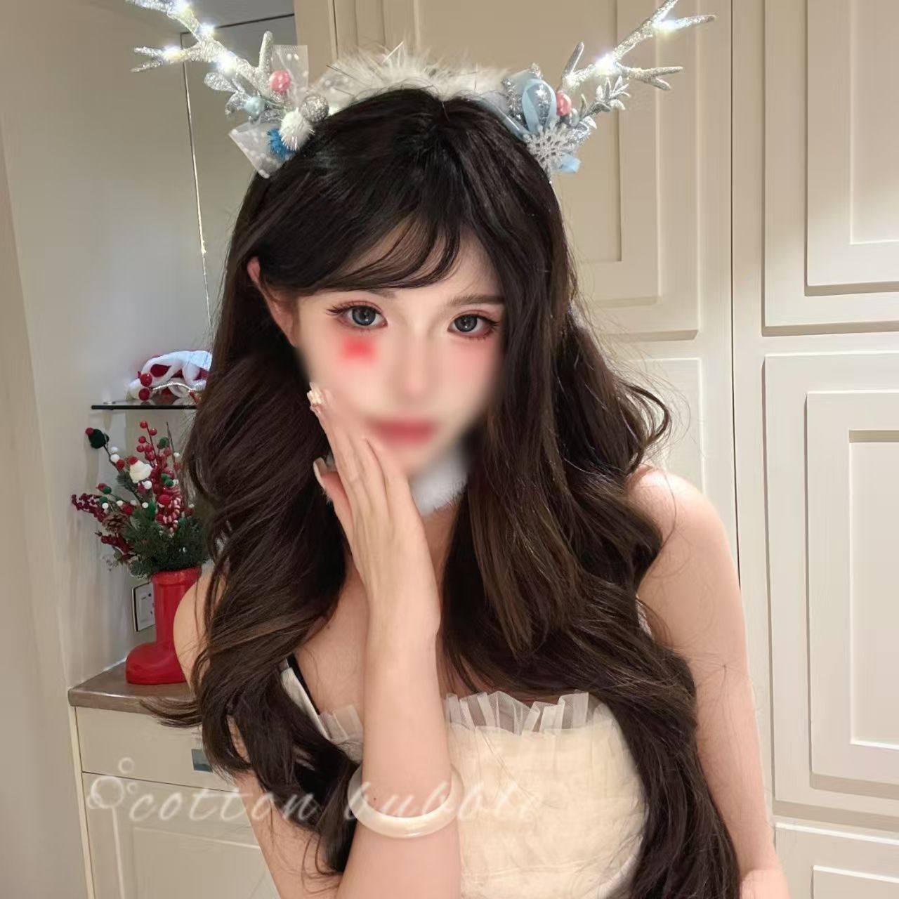 姐妹同享~圣诞节羽毛鹿角发箍头饰女cos服装配饰拍照氛围发饰头箍