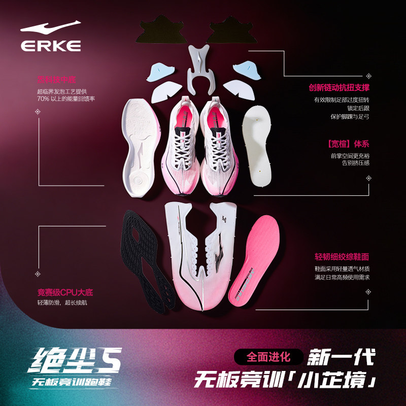 鸿星尔克绝尘5无板竞训跑步鞋男鞋专业竞速跑鞋减震稳定运动鞋男