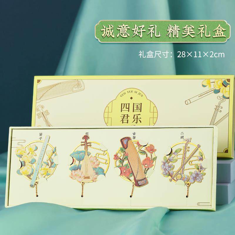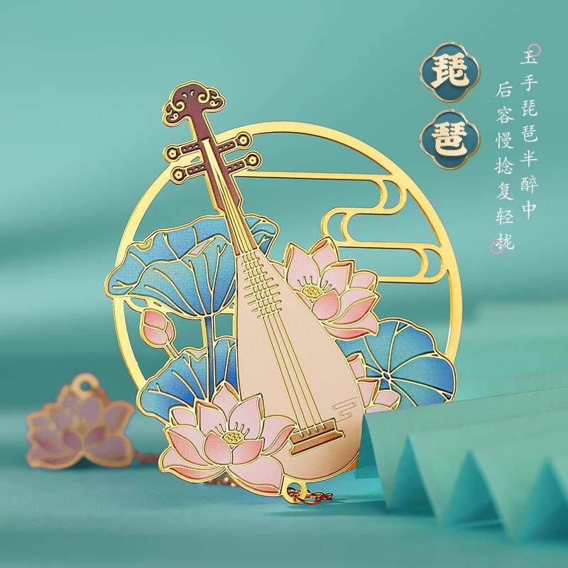 教师节礼物故宫乐器金属书签定制刻字古风纪念品 古典中国风镂空