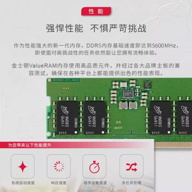 金士顿官方ddr5 5600 16G/32G内存条笔记本电脑电竞游戏