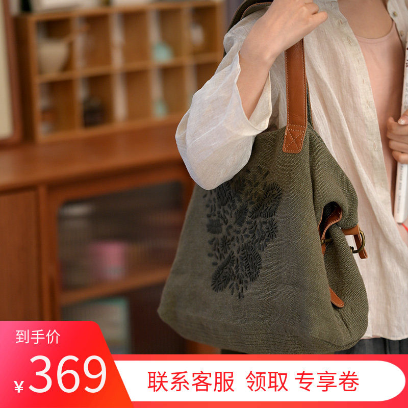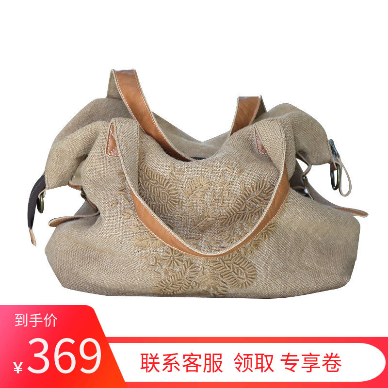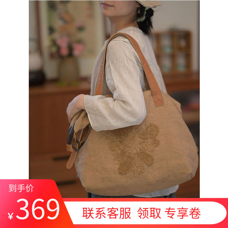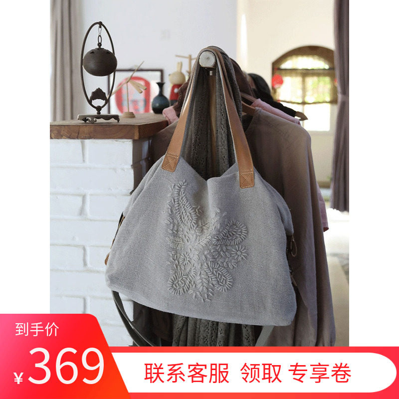 文艺复古风棉麻刺绣精致大容量斜挎单肩帆布包女小众民族风手提包