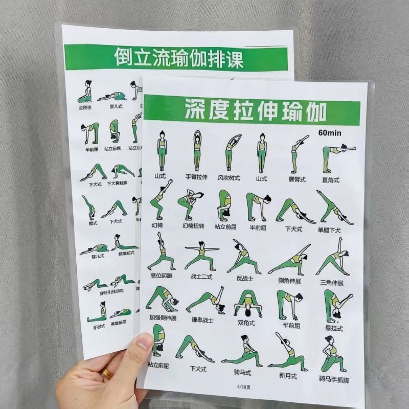 瑜伽自学排课养护肩颈理疗深度拉伸道理流瑜伽早教塑封挂图认知卡