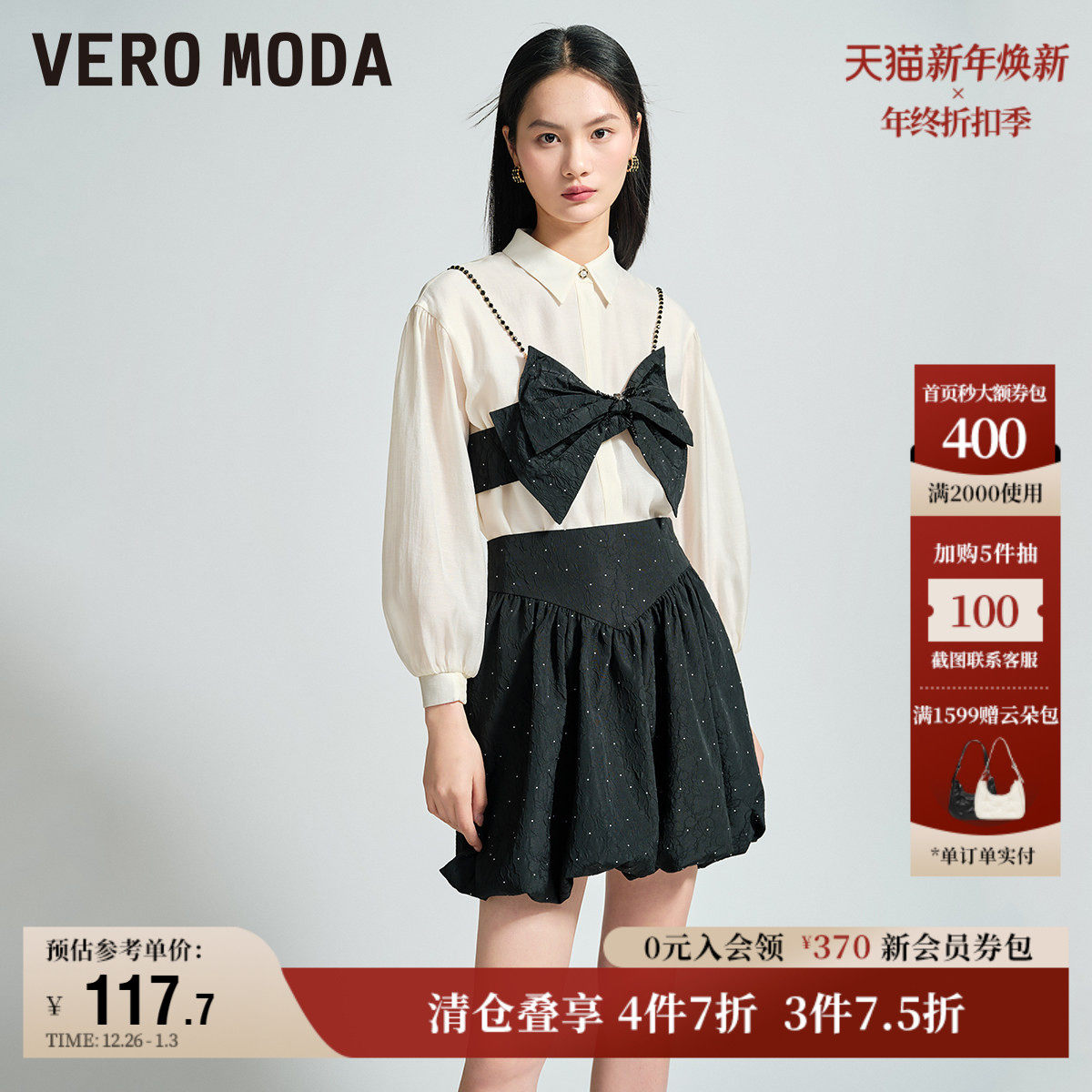 Vero Moda奥莱衬衫女秋季新款甜美气质可拆蝴蝶结装饰上衣流行