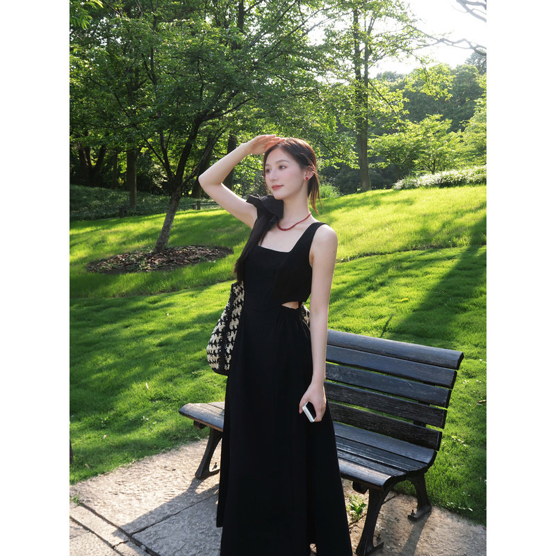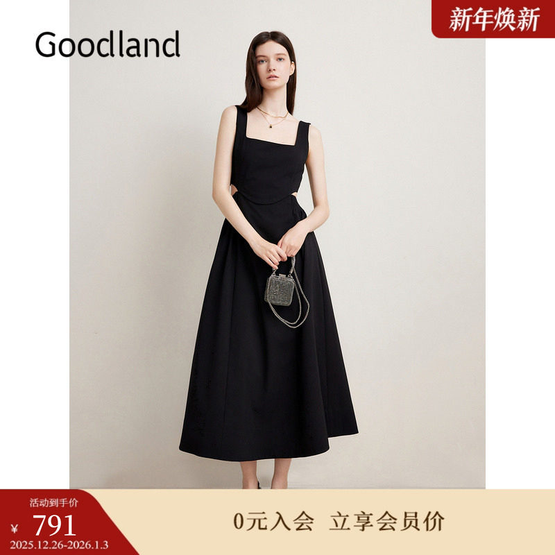 【博主同款】Goodland美地春季小黑裙舞蹈艺术家吊带连衣裙