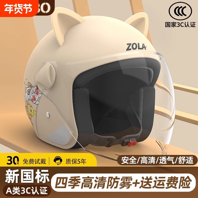 头盔国标3c认证电动车男女摩托车四季通用安全帽秋冬保暖半盔防雾