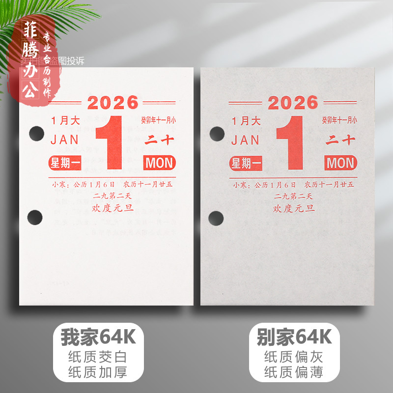 澳申台历芯2026年台历芯架马年日历365天64K台芯一天一页活页桌面两孔商务日历备忘记事本金属台历架老式黄历
