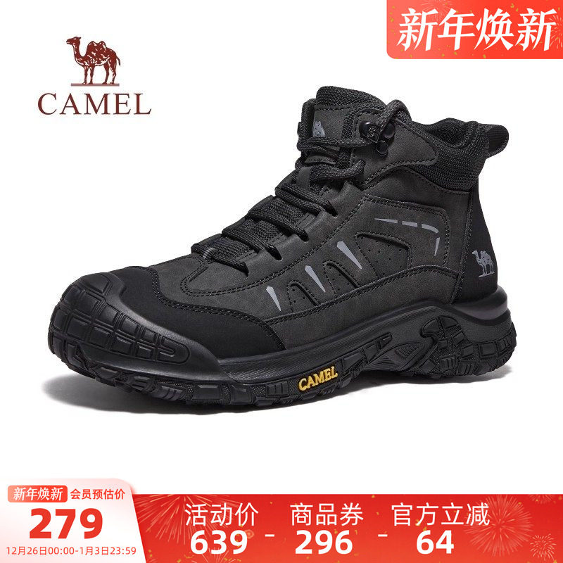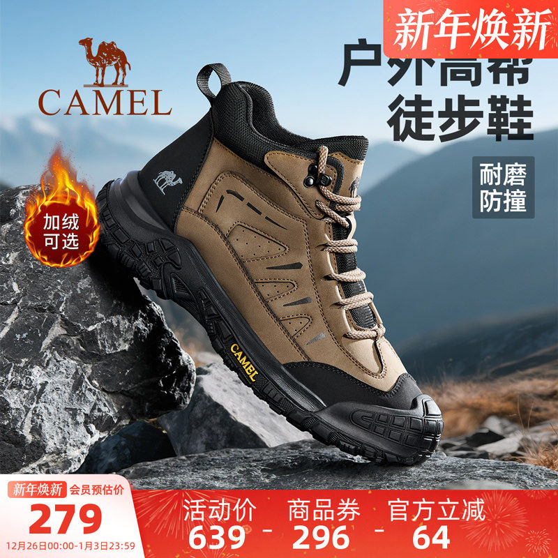 骆驼男鞋高帮鞋2025冬季新款加绒防滑户外登山徒步鞋耐磨运动鞋男