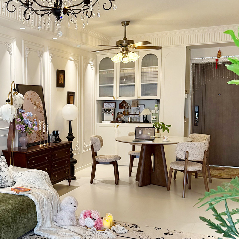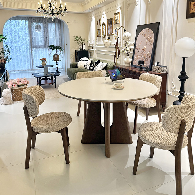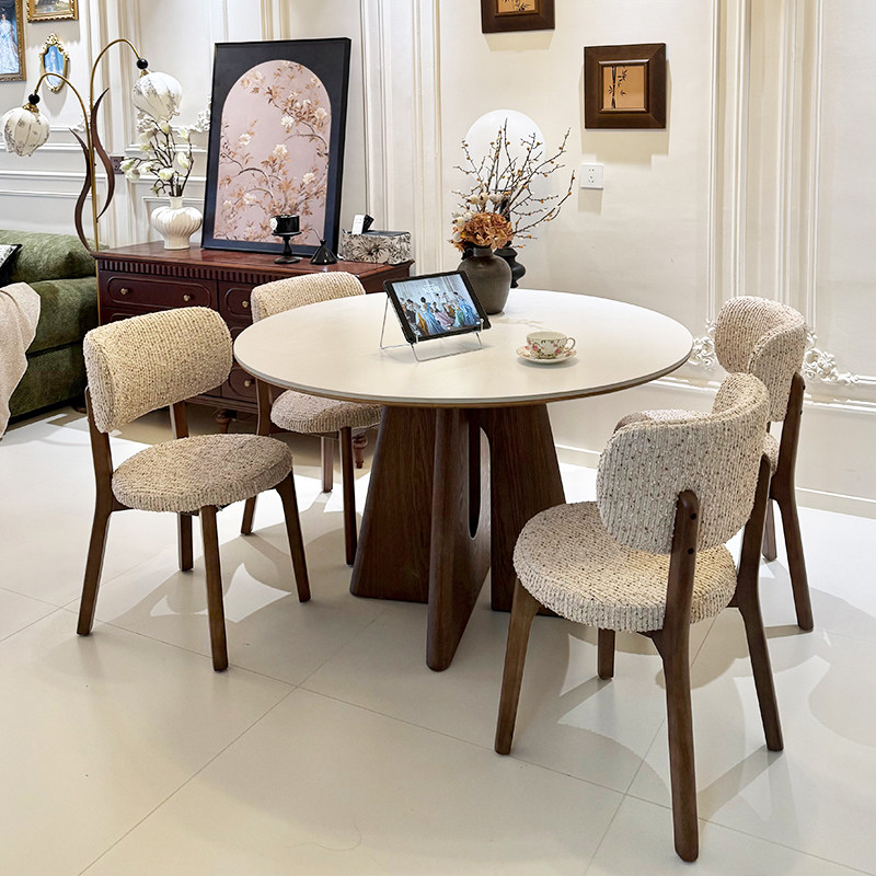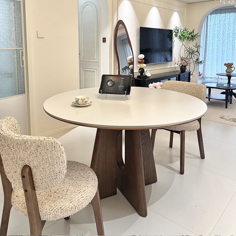 奥古斯特纯白岩板餐桌小户型洽谈轻奢中古风2025新款圆形实木餐桌