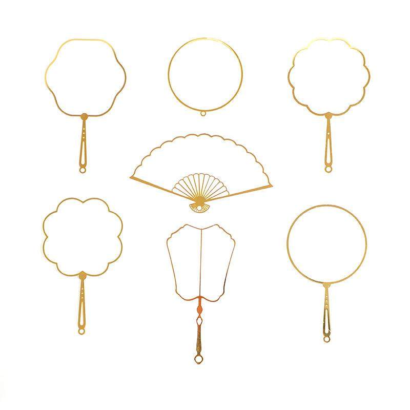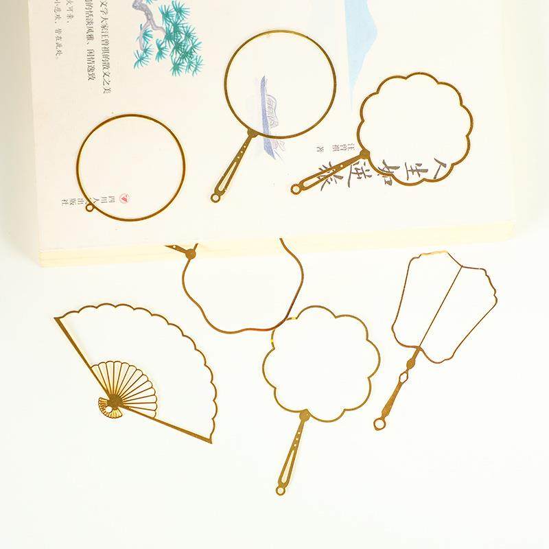 团扇书签源头工厂金属边框镂空蚀刻电镀文艺黄铜文创书签刻字现货