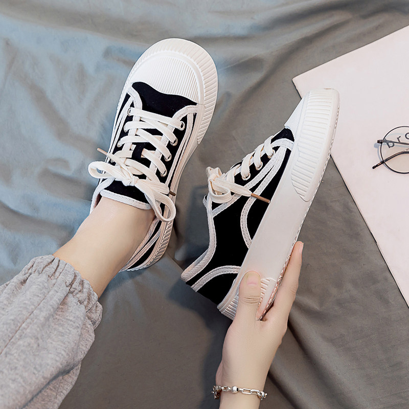 帆布鞋子女鞋2025新款百搭春秋款运动休闲厚底透气板鞋小众运动鞋