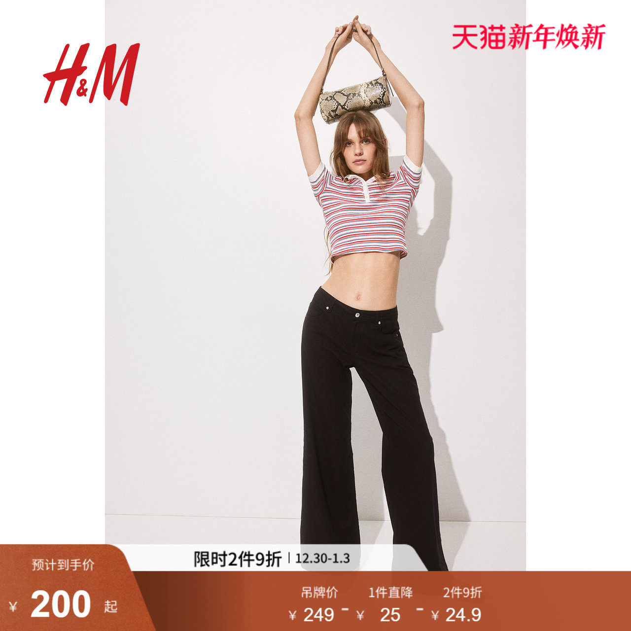 HM女装休闲裤冬季新品亚麻潮流时尚柔软混纺阔腿裤1262014