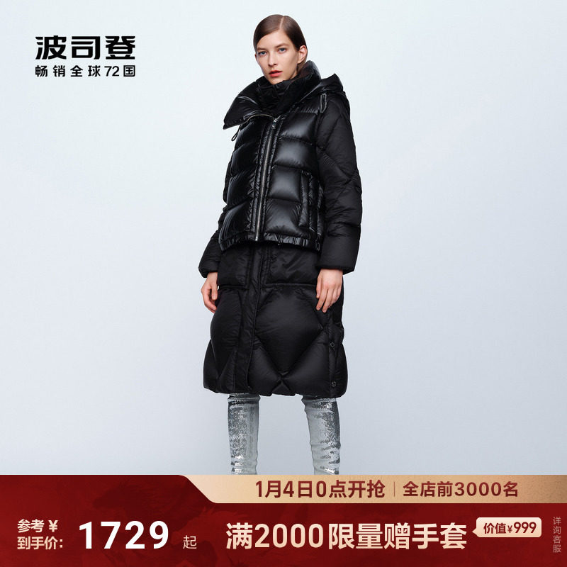 时尚泡芙90鹅绒 波司登设计师款高端轻盈保暖零压假两件羽绒服女