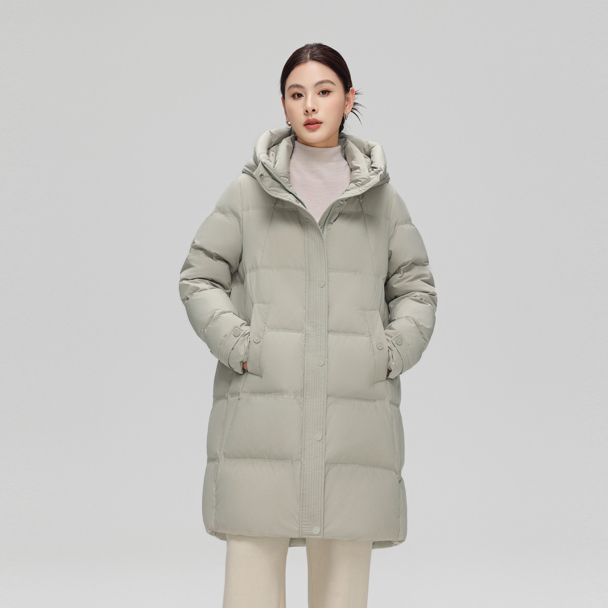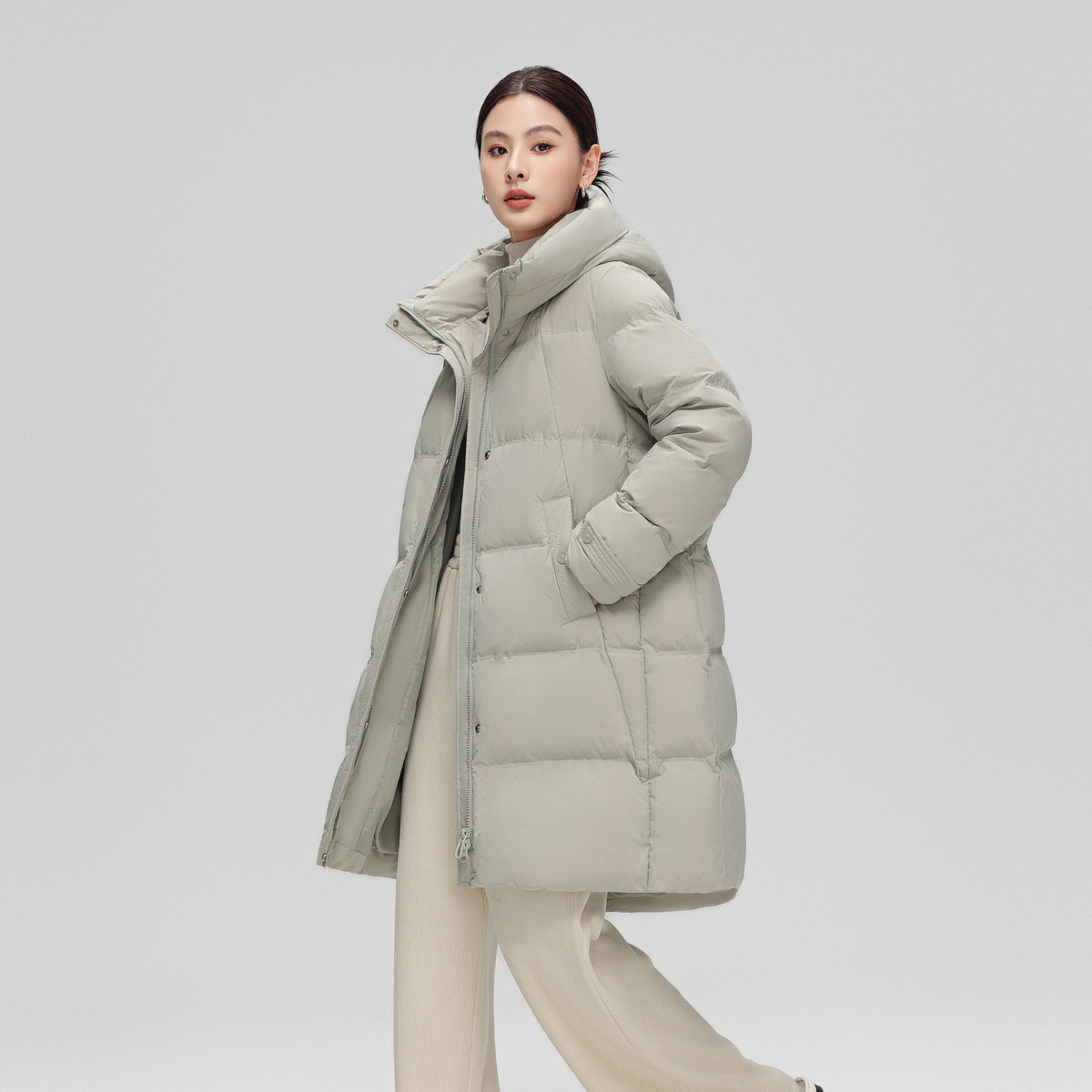雪中飞2025冬新款女士中长款羽绒服连帽纯色高级轻暖优美气质