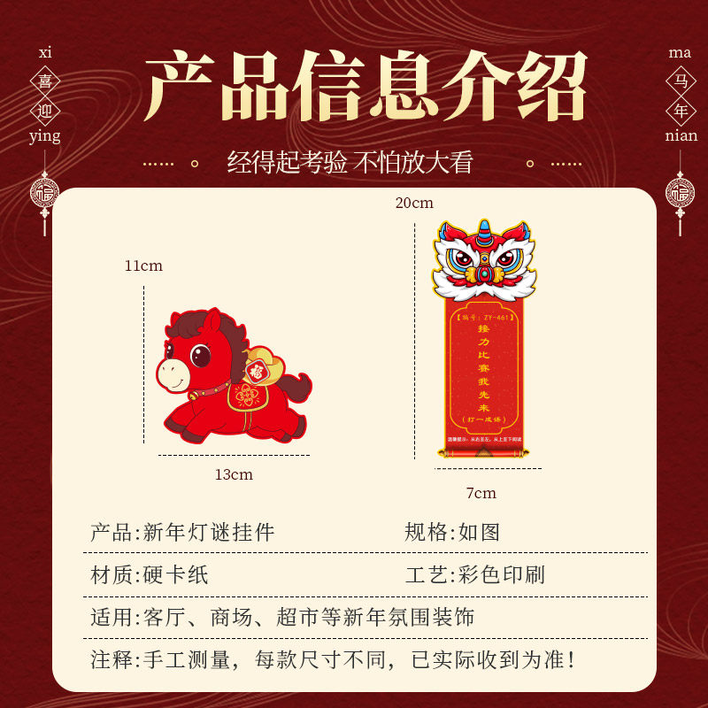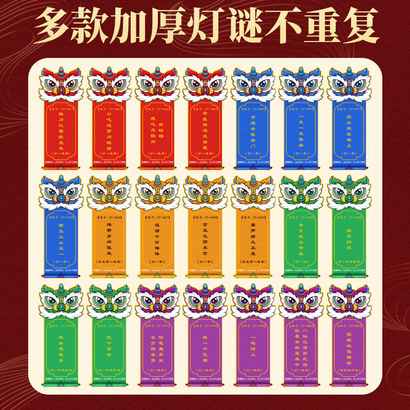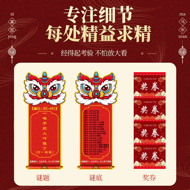2026新款元宵节猜灯谜卡片灯笼马年谜语字谜条醒狮装饰场景布置道具