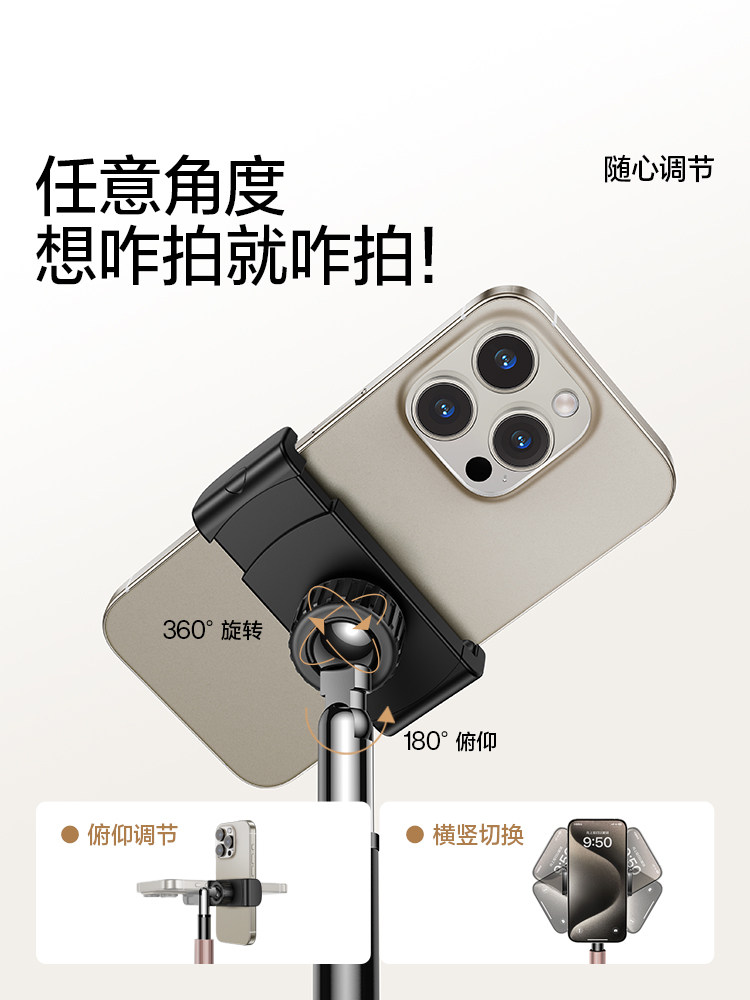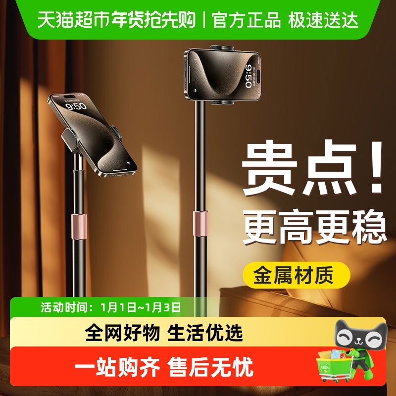 手机拍摄支架直播专用自拍杆三脚架落地式多功能支撑架通用捭机架户外便携伸缩升降网课考研复试架子三角支夹