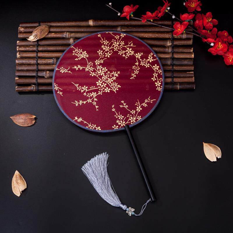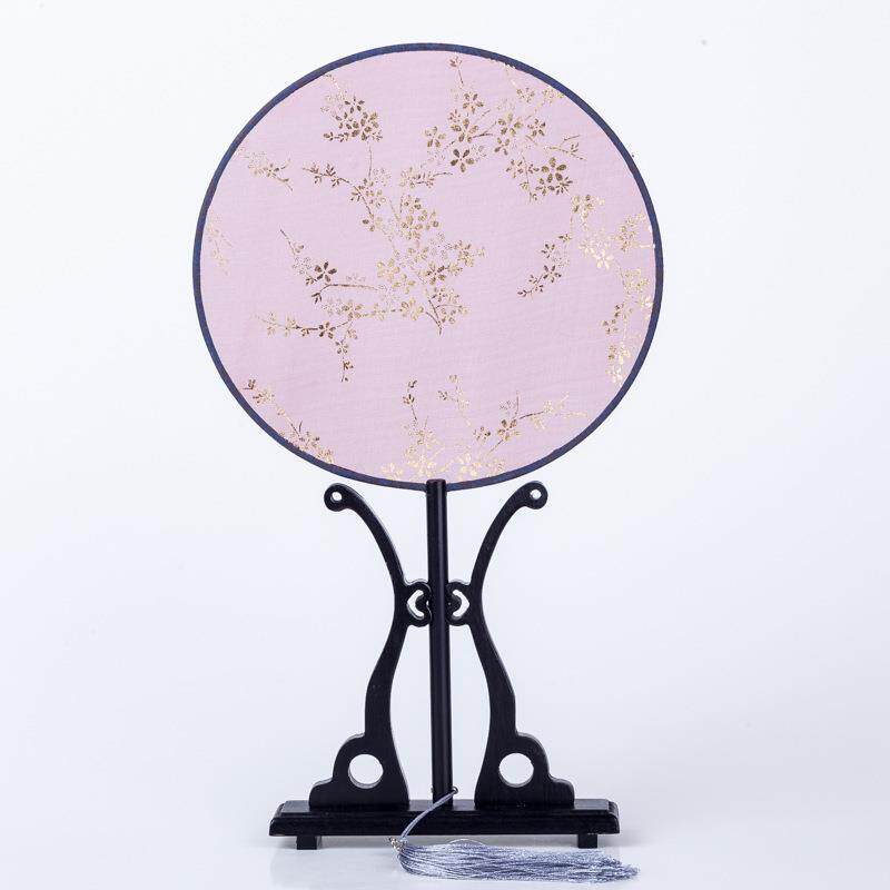 中国风真丝圆扇子烫金宫廷扇汉服摄影道具舞蹈扇夏季女士古风团扇