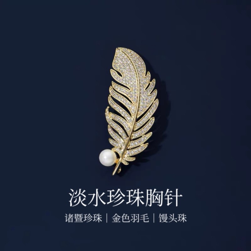 诸暨淡水珍珠胸针轻盈羽毛精致百搭气质胸花防走光别针七夕节礼物