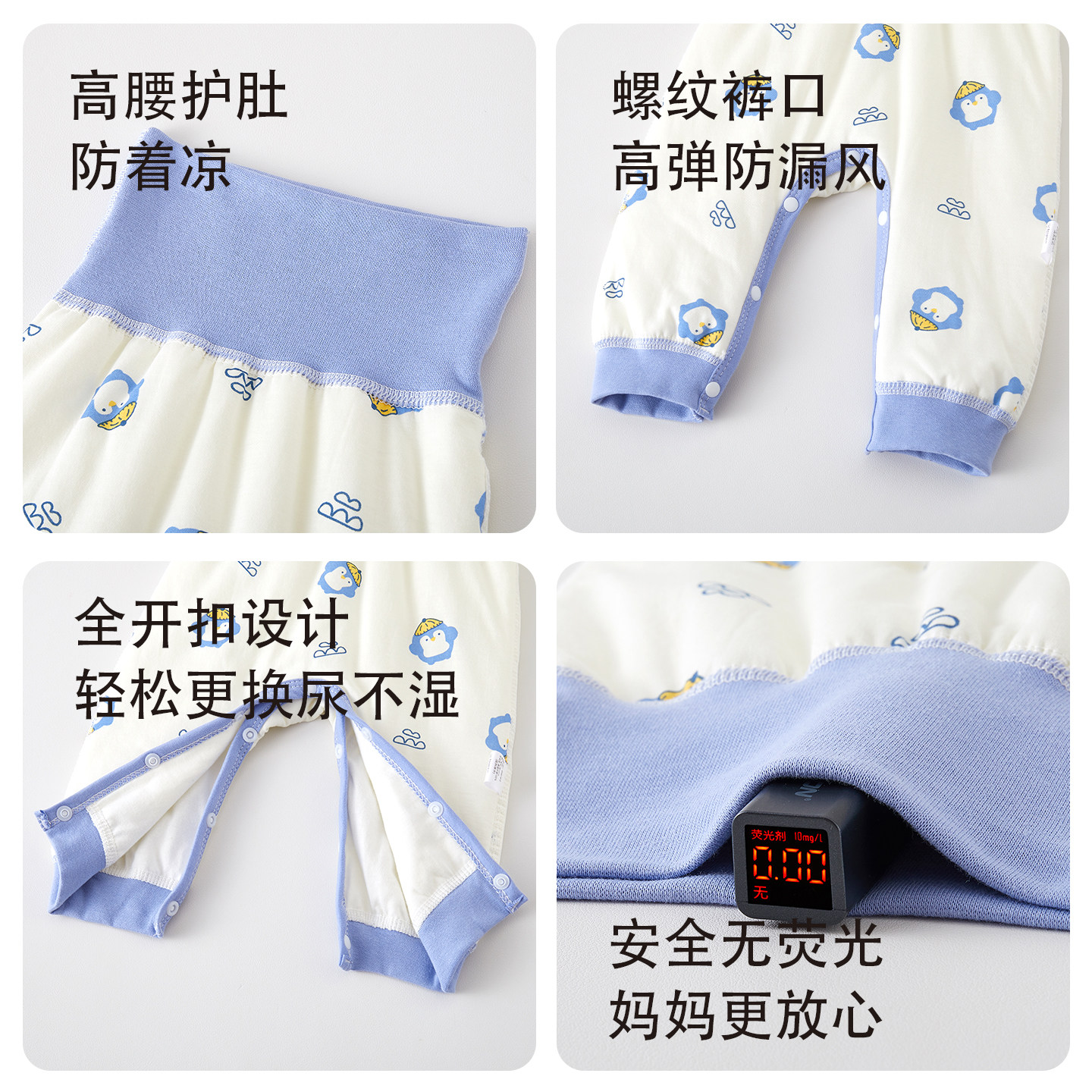 婧麒宝宝裤子高腰护肚秋冬季保暖婴儿夹棉睡裤长裤保暖裤可开档