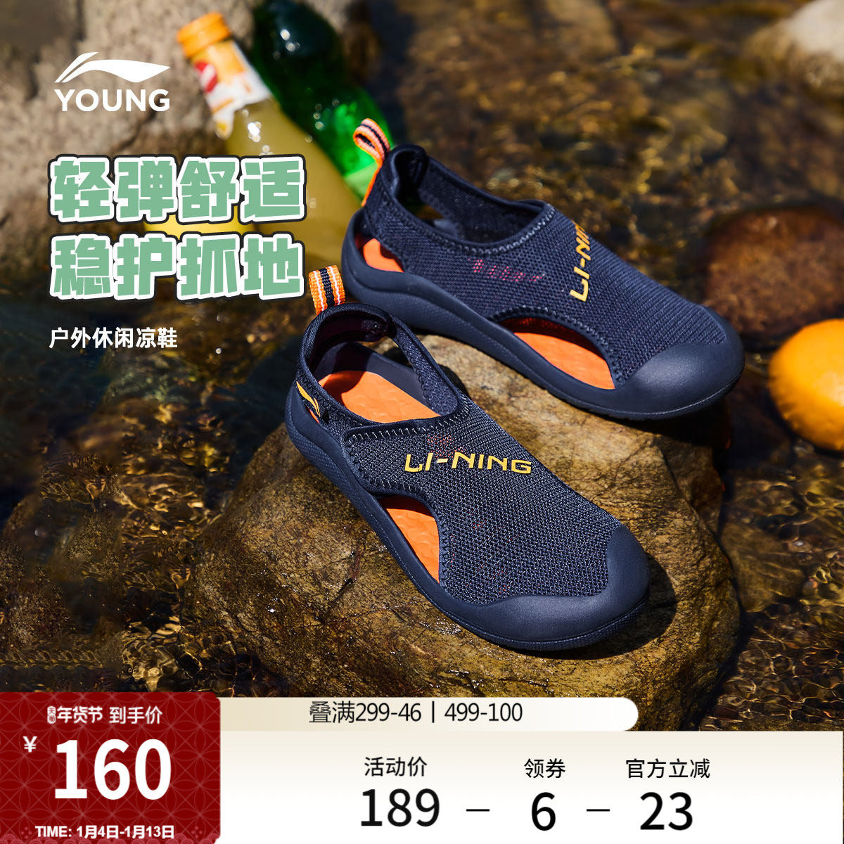 李宁童鞋凉鞋男女小童新款圆头鞋子夏季透气运动低帮童鞋