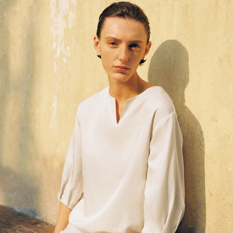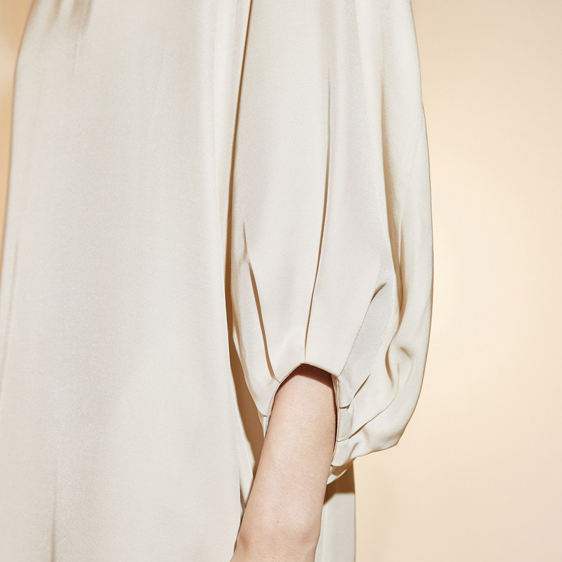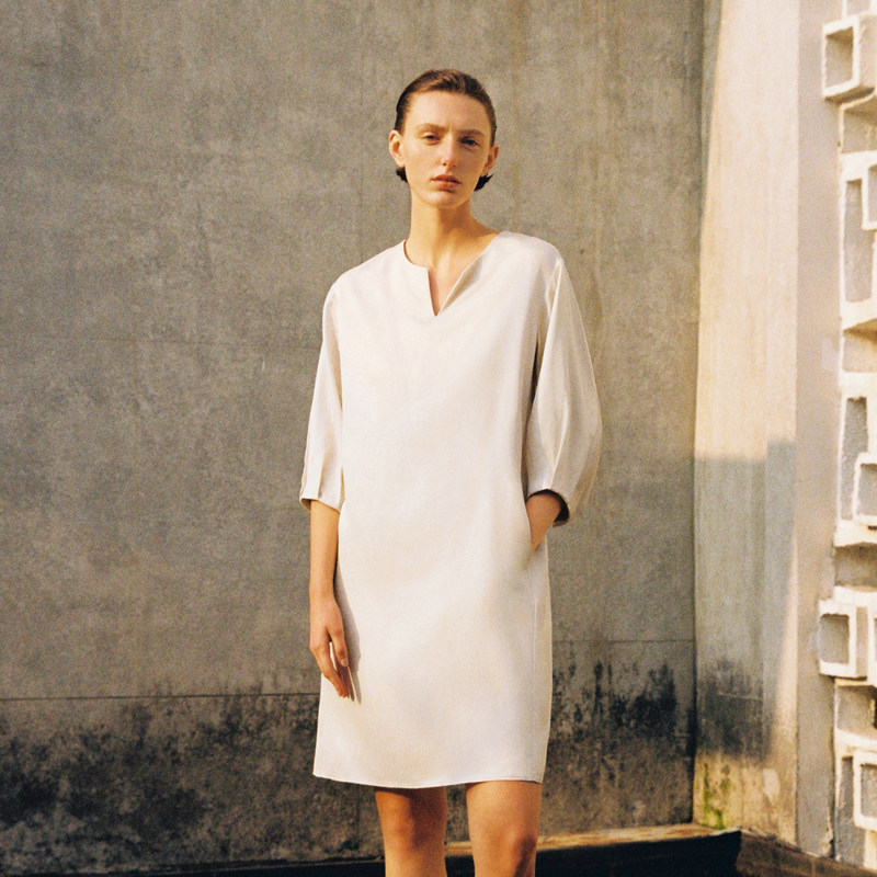LESS夏季桑蚕真丝裙子女简约休闲宽松套头中袖连衣裙2N4G13510