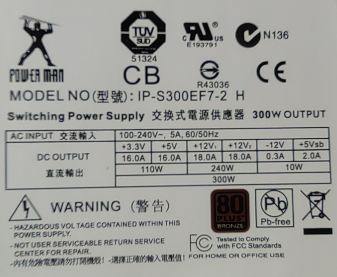镰刀CORE-TFX275小超人电源 IP-S300FF1-0 IP-S300EF7-2 300W TFX