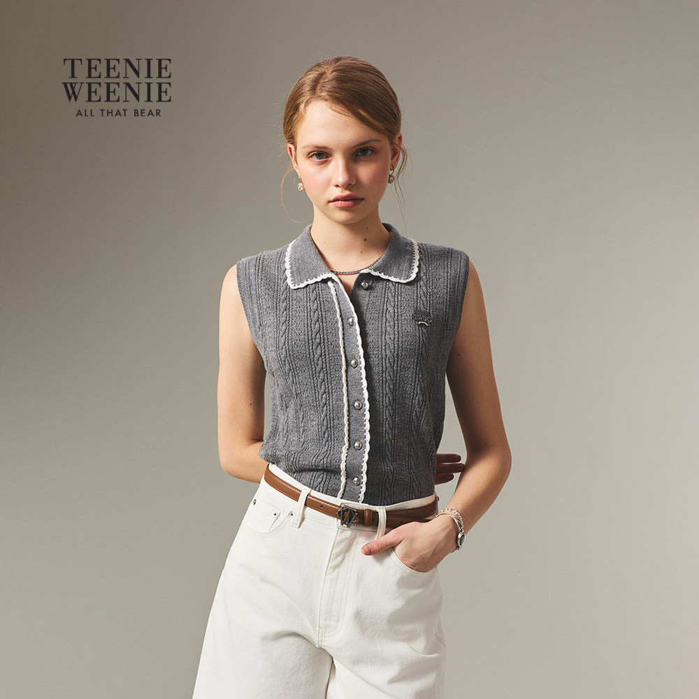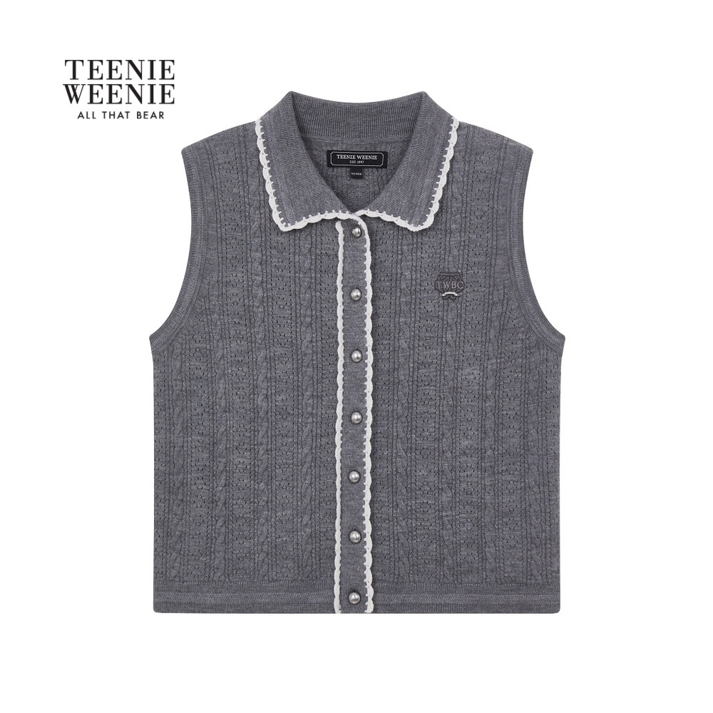TeenieWeenie小熊女毛衣26春季新品甜美时尚蕾丝拼接无袖针织背心