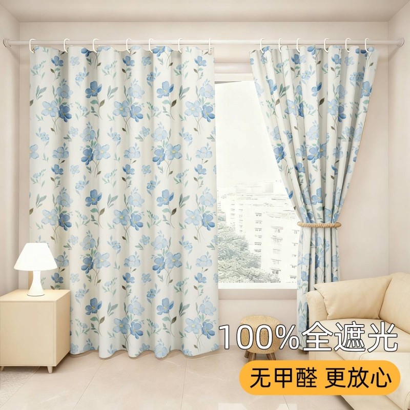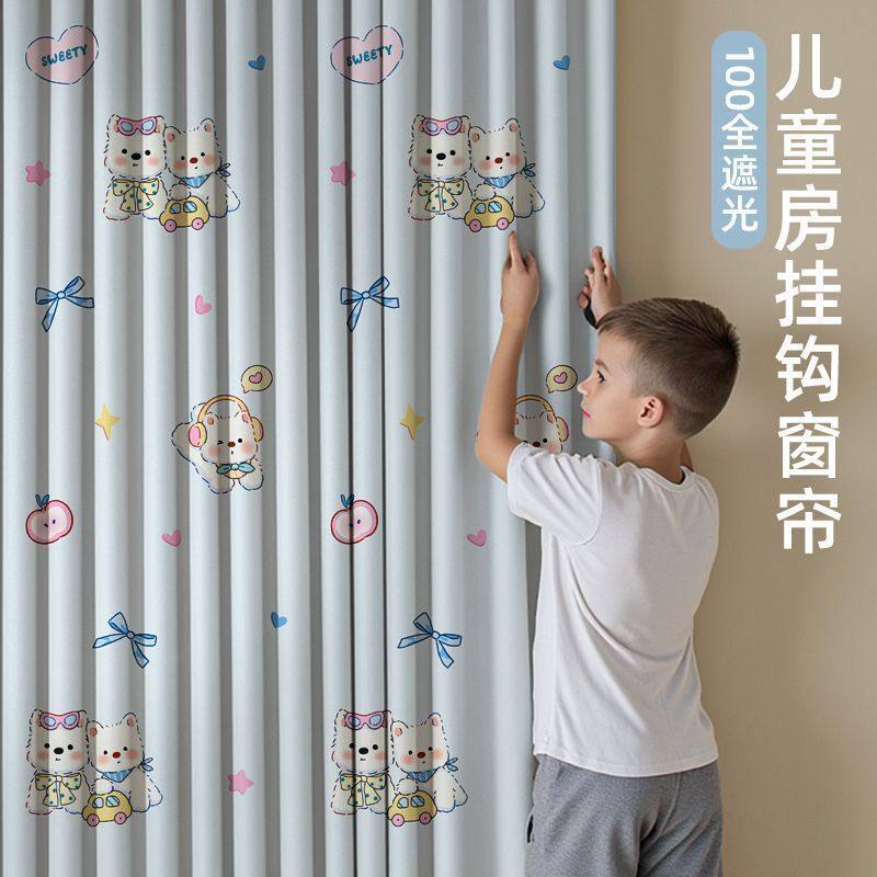 全遮光窗帘免打孔家用防尘客厅书房成品帘子卧室阳台遮挡帘儿童房