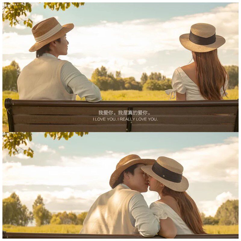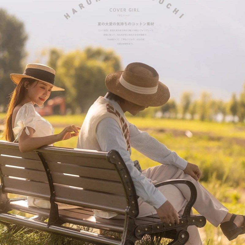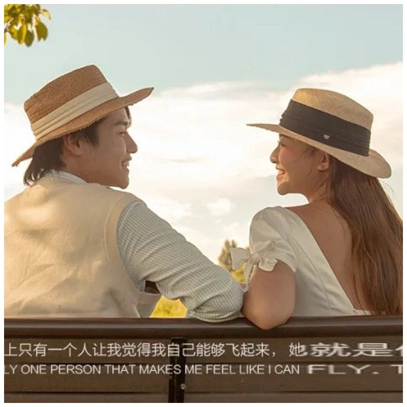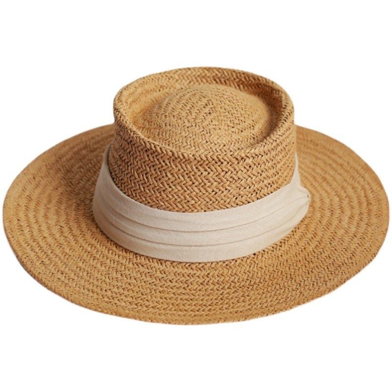 法式英伦复古婚纱照外景旅拍道具帽子夏天编织平顶礼帽复古沙滩帽