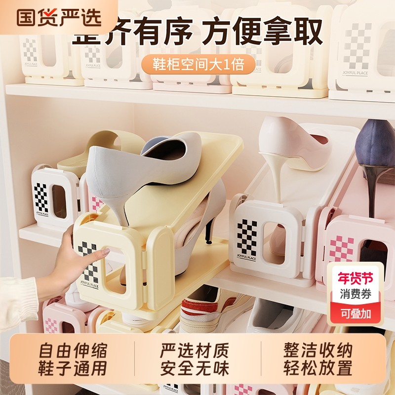 鞋柜分层隔板衣柜可伸缩鞋子收纳神器双层鞋托架子橱柜内隔断鞋架