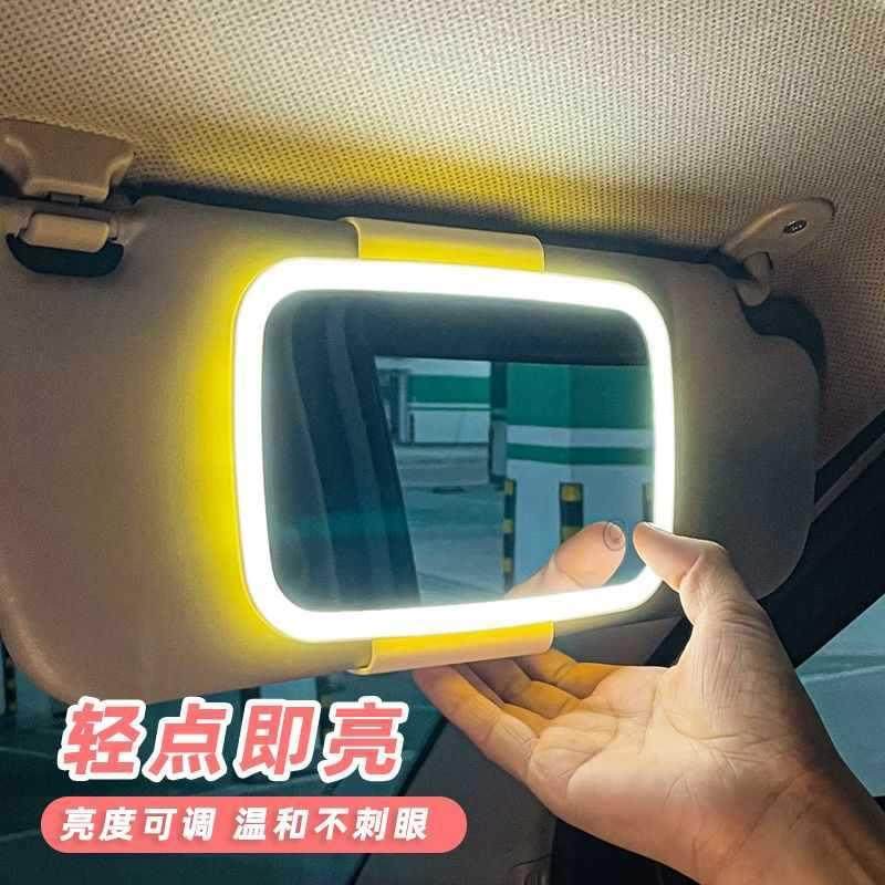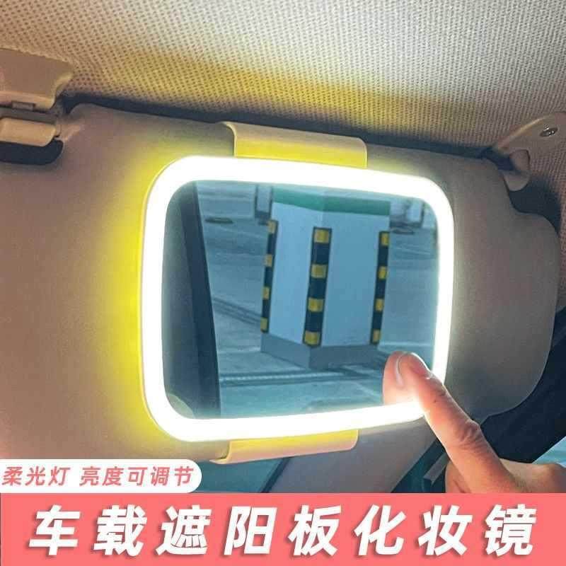 汽车遮阳板化妆镜车内副驾驶遮光板带LED灯车用梳妆镜车载内饰品