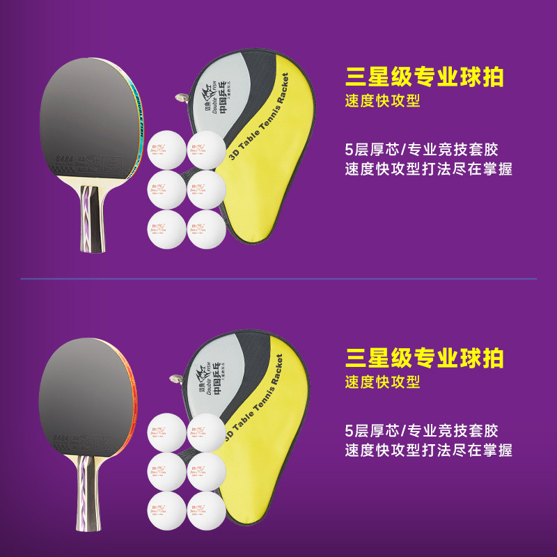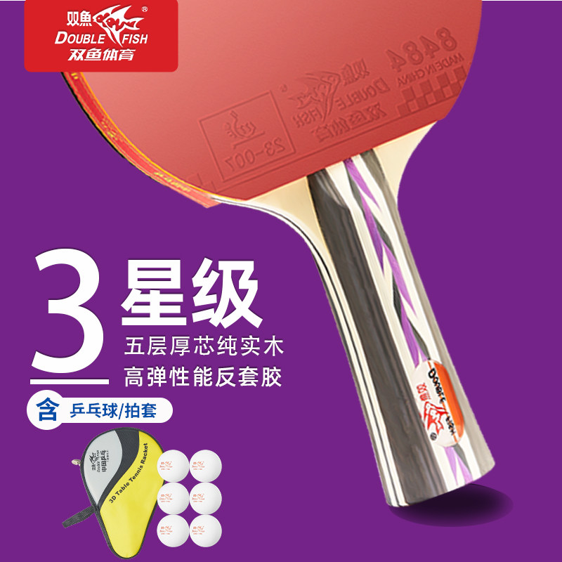 双鱼3D青少年力量进阶训练型乒乓球拍系列横直拍单双球拍专业正品